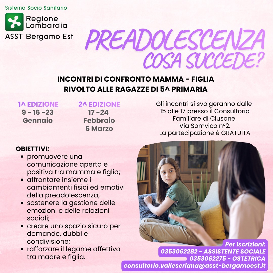 PREADOLESCENZA COSA SUCCEDE? - Incontri di confronto mamma-figlia - #ASSTBergamoEST