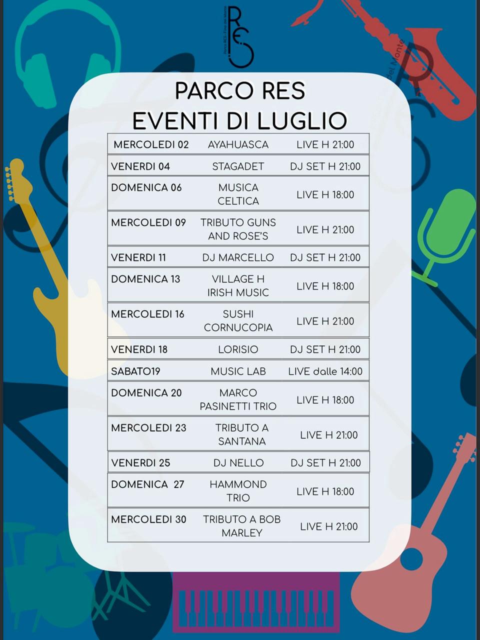 Tutte le serate al Parco Res del mese di Luglio 2025