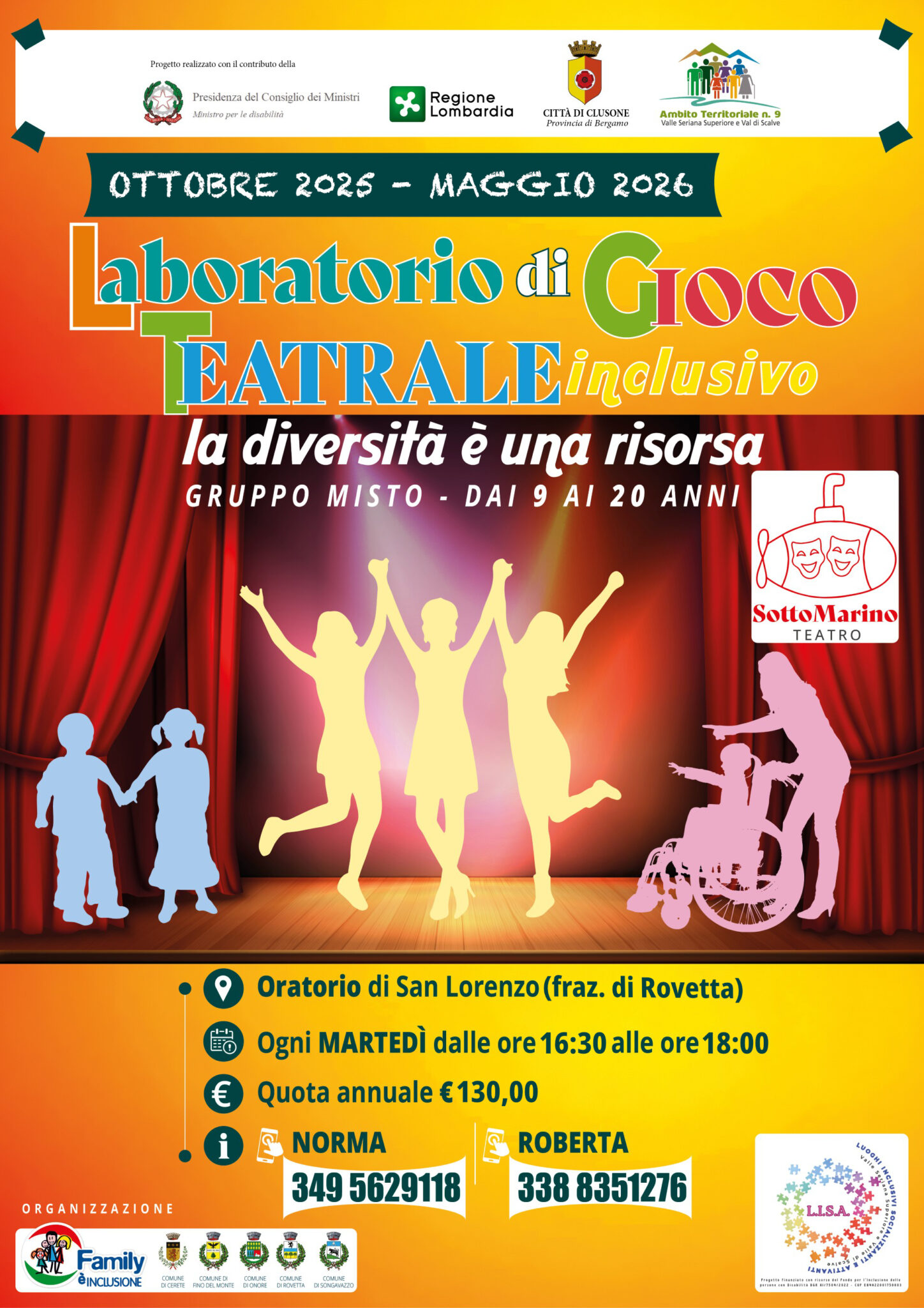 Per il terzo anno consecutivo, proponiamo questo “Laboratorio di gioco teatrale inclusivo “ dove la diversità è una risorsa!