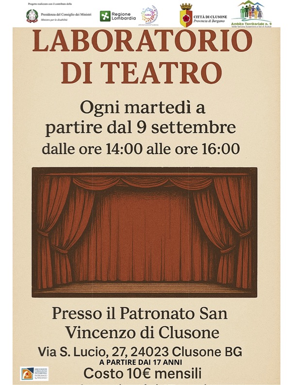 Patronato San Vincenzo: LABORATORIO DI TEATRO (dai 17 anni)